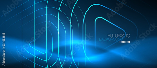 Neon glowing techno lines, hi-tech futuristic abstract background template with geometric shapes