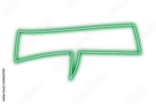 Neon green chat bubble png. Glowing speech bubble on transparent background.