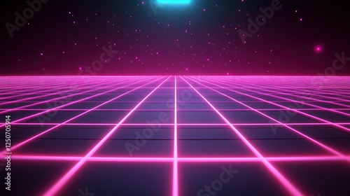Neon Grid: A Retro-Futuristic Landscape with Glowing Starfield Backdrop