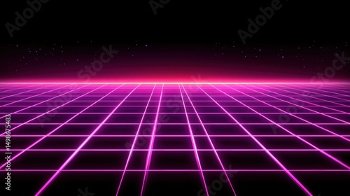 Neon Grid Landscape with Starry Sky and Futuristic Vibe