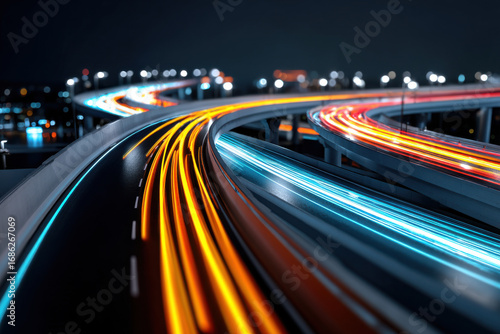 Neon highways with futuristic traffic at night