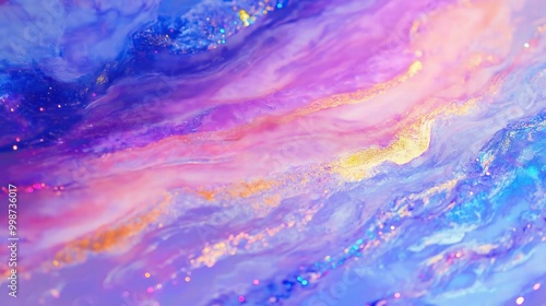 Neon iridescent watercolor texture in blue and purple for artistic design