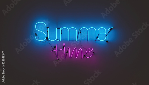neon lamp with the words SUMMER TIME on a plain wall