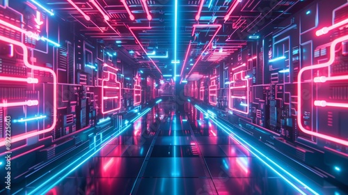 Neon LED Lighting Using Cyber Collage Y2K Style Design Creative Art to Illuminate Space with Vibrant Elegance. Nightlife cyber space party.