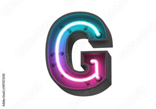 Neon Letter G Bright Colorful and Retro Alphabet Design isolated on transparent background