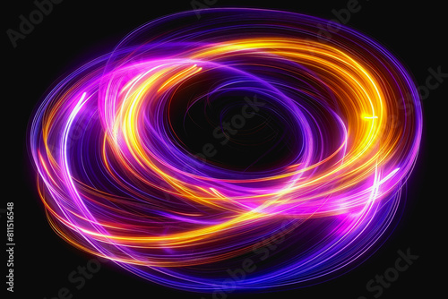 neon light swirls dancing in colorful or pastel with vivid streaks, isolated on a black background.