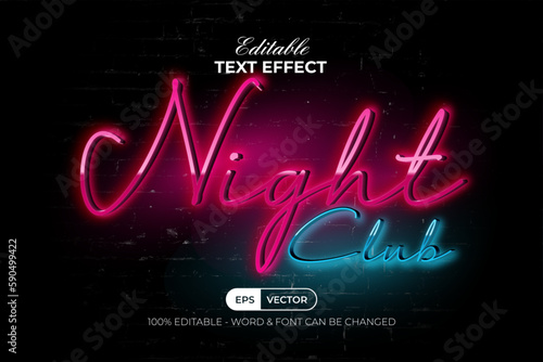 Neon light text effect night club style. Editable text effect.
