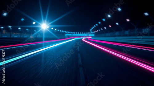 Neon Light Trails on Futuristic Car Race Track – Long Exposure Speed Motion Photography