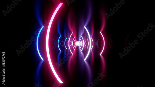Neon Line Tunnel glowing Fluorescent light corridor stage 3D illustration background