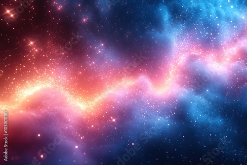 Neon lines and stars create a light pink, blue, and purple abstract background.