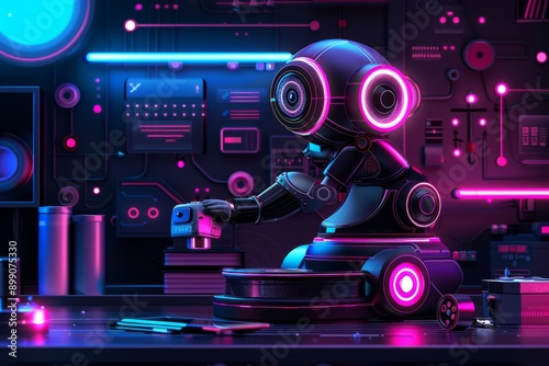 Neon lit medical control panel in a futuristic setting perfect for high tech healthcare and innovative design themes
