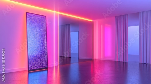 Neon Lit Room Featuring Illuminated Data Screen
