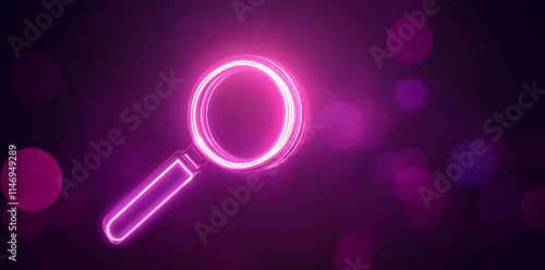 Neon Magnifying Glass and Frame on Black Background