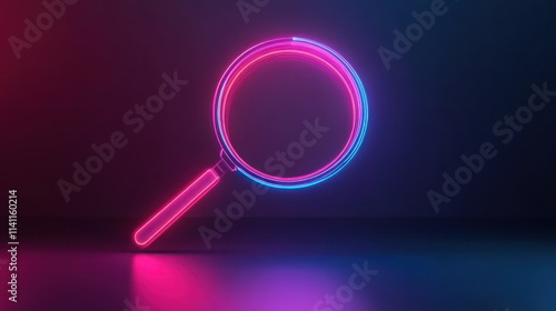 Neon magnifying glass icon. Discovery, research, search, analysis concept. search bar neon icon search tool magnify zoom.