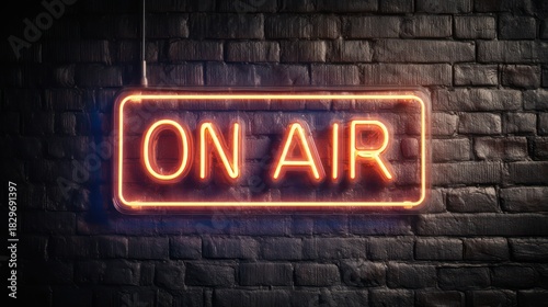 Neon 'On Air' Sign on Dark Brick Wall Background