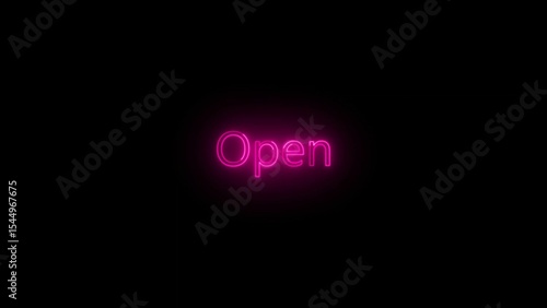 Neon open sign illuminated in vibrant pink against a dark backdrop representing availability and invitation