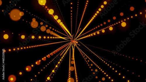 neon orange rays on a black background. abstract corridor of rays. 3d rendering