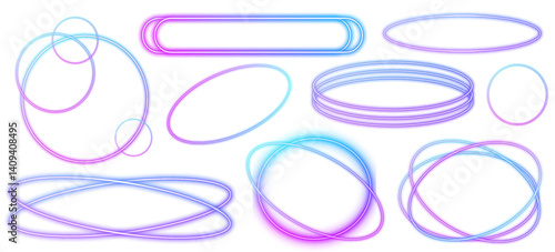 Neon polygon frames with glowing borders. Vibrant futuristic UI design elements. Colorful geometric shapes collection. PNG