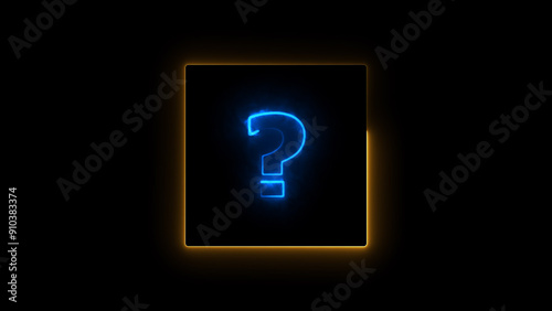 Neon question mark icon blue color illustration, On black background.