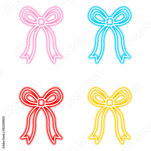 Neon ribbon bows in festive gift wrapping display, used for banner design, icon category