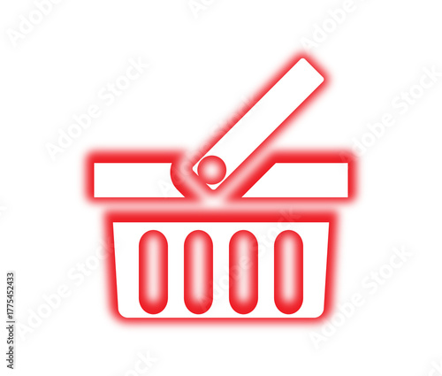 Neon Shopping Basket Icon for E-Commerce, Store App UI, Retail Market and Online Shop Design