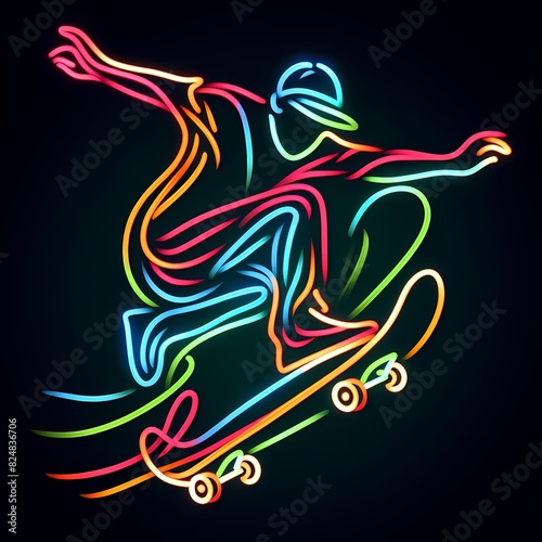 Neon Skateboarder Performing a Trick