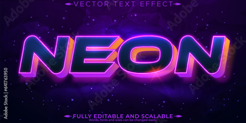 Neon text effect, editable retro and glowing text style.
