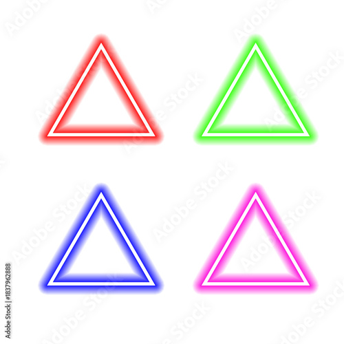 Neon Triangle PNG Set, Glowing Double-Line Triangular Frames in Red Green Blue Pink, Futuristic Light Shapes for UI Elements, Digital Overlay Graphics and Modern Design