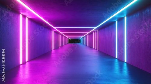 Neon tunnel, vibrant glow, urban backdrop, gaming