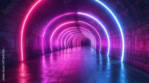 Neon Tunnel with Purple and Blue Lights Generative AI