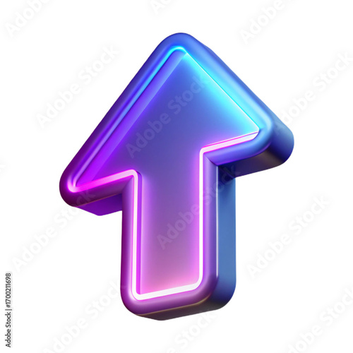 Neon Up Arrow Symbol Glowing with Modern Design isolated on black