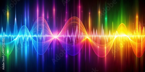 Neon Waveforms Colorful Abstract Background with Glowing Lines and Sound Wave Patterns, abstract , background , music , light