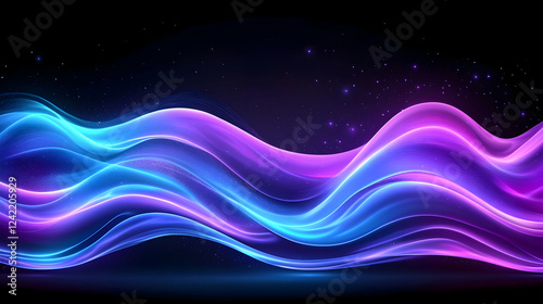 Neon waves abstract background, cosmic night sky, energy flow, design element