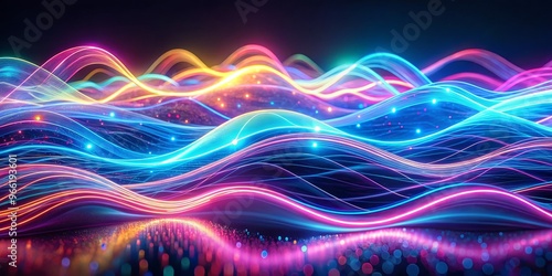 Neon Waves of Light, Abstract, Digital Art, Technology , neon, abstract, light