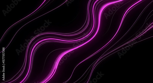 Neon Waves on Black Background Abstract Light Trails, Modern Design, Glowing Pink Curves and Smooth Lines