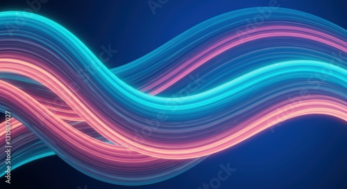 neon waves, vibrant colors, electric blue and pink, glowing ribbons, abstract background, fluid motion, dynamic curves, smooth gradient, futuristic design, digital art, 3D rendering, luminous strands,