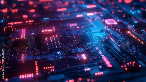 Neon-Lit Circuit Board: A 3D Render of Futuristic Technology. AI Generated