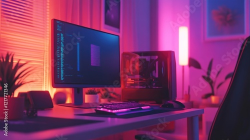 Neon-lit Gaming Setup: A Vibrant Workspace for Digital Adventures