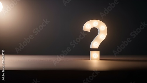 Neon-white question mark on dark background, panoramic image