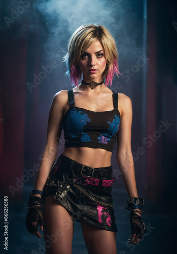 Neopunk young girl at photoshoot witth smoke