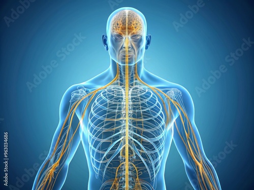 Nervous system organs morphology with intricate technical details mood of serenity in pale blue color