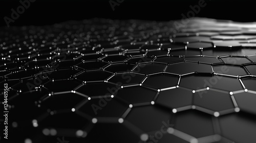Network connection concept black background illustration. Futuristic hexagon perspective wide angle lanscape. Futuristic honeycomb concept. 3d landscape. Big data digital background.