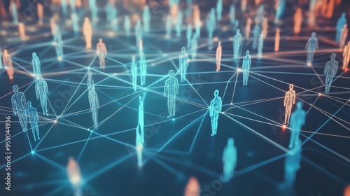 Network diagram with people connected by lines, digital flowchart, 3D illustration
