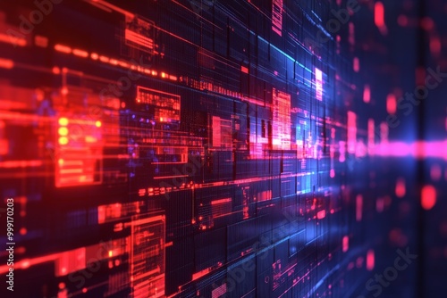 Network firewall illustrated as a digital barrier blocking incoming cyber threats, with attackers being repelled.