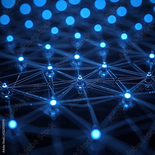 Network of blue spheres forming an intricate pattern representing connectivity and modern technology