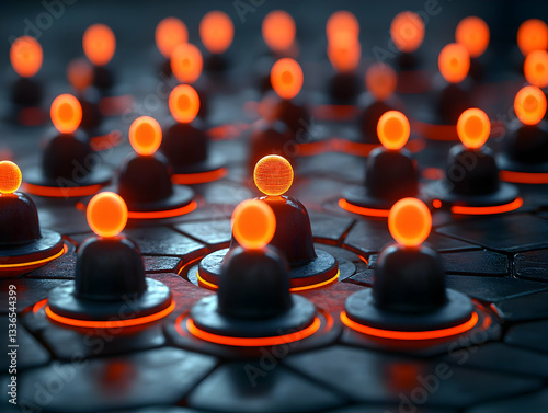 Network of interconnected individuals glowing orange digital network technology connection futuristic innovation community teamwork collaboration