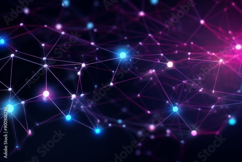 Network of lights shining in purple and blue. Concept of technology, connection, data communication