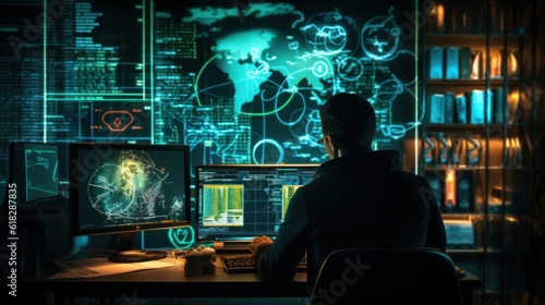 Network operations center with technicians monitoring network traffic, troubleshooting issues, and ensuring network performance
