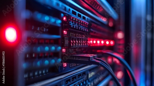 Network switches and Ethernet cables are essential components in modern data center setups.