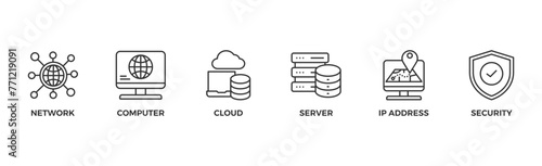 Network technology banner web icon vector illustration concept with icon of network, computer, cloud, server, ip address and security